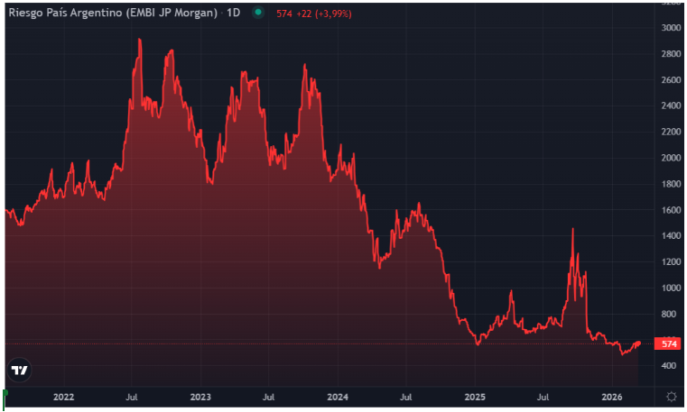 Empecemos por los bonos. Argentina todavía tiene un riesgo país cercano a los 600 puntos, un nivel que sigue reflejando cierto escepticismo del mercado sobre la sostenibilidad de largo plazo.