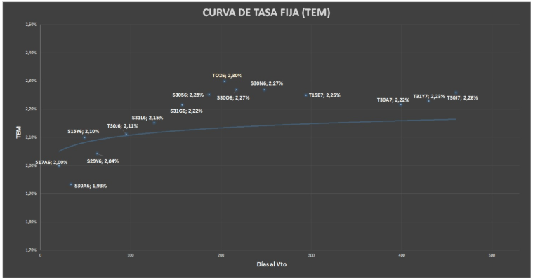 Hoy las tasas están en torno al 2/2,3% mensual (TEM), bastante planas a lo largo de la curva. Eso, anualizado, da algo en línea con el 25%/30%. El problema es que eso depende totalmente de que la inflación siga bajando. Si la inflación se mantiene por encima de ese nivel, el rendimiento real vuelve a ser negativo. En cambio, el UVA directamente se ajusta: no depende de acertar el número de inflación, la sigue.