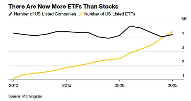 Por primera vez en la historia, en EEUU hay más ETFs listados que acciones individuales. ¿Cómo puede ser?
