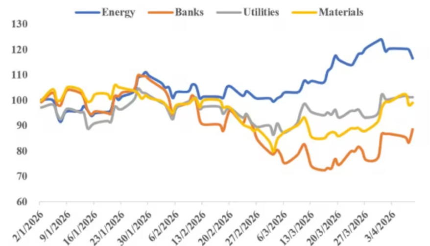 El gráfico de arriba lo deja bastante claro. Mientras el sector energético sigue mostrando fortaleza, los bancos quedaron muy por detrás, y utilities y materiales en el medio. Ya no es un mercado donde todo sube junto, sino uno donde empieza a haber ganadores y perdedores bien marcados.