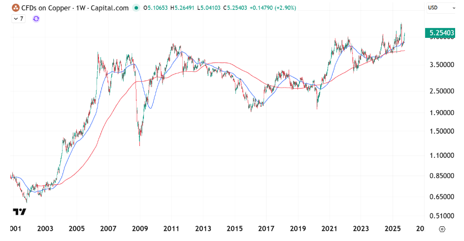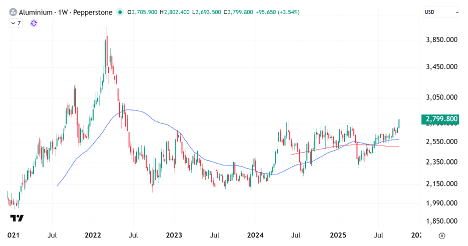 En este caso se trata de un metal industrial. El cobre ya estaba en una clara tendencia alcista que se vio interrumpida luego de que Trump anunció una serie de impuestos a las importaciones de productos derivados de este metal.