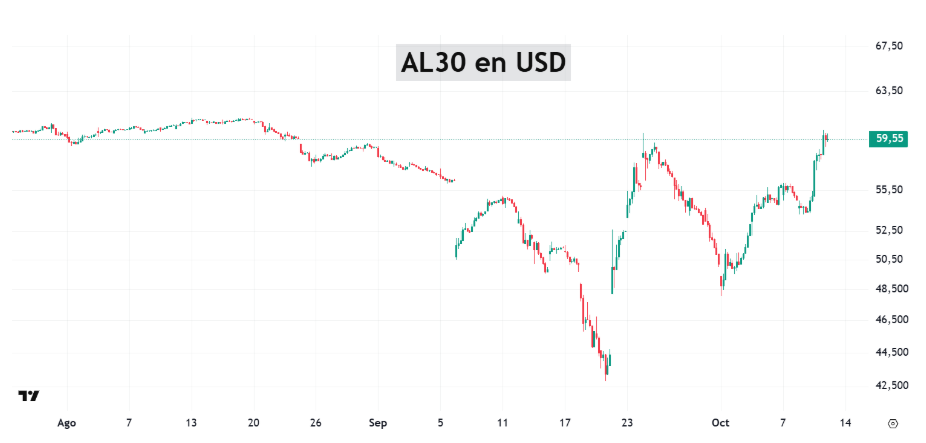 Veamos el comportamiento del AL30, que ya superó los niveles previos a las elecciones de Buenos Aires, luego de subir 38% desde los mínimos: