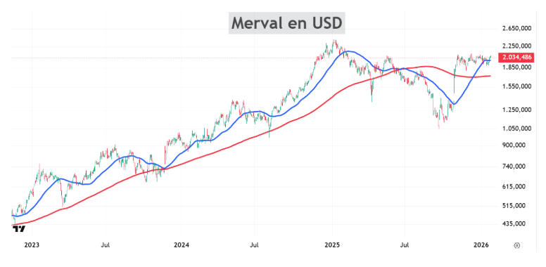 El Merval también está en clara tendencia alcista (por encima de ambas medias móviles) y tiene buenas perspectivas:
